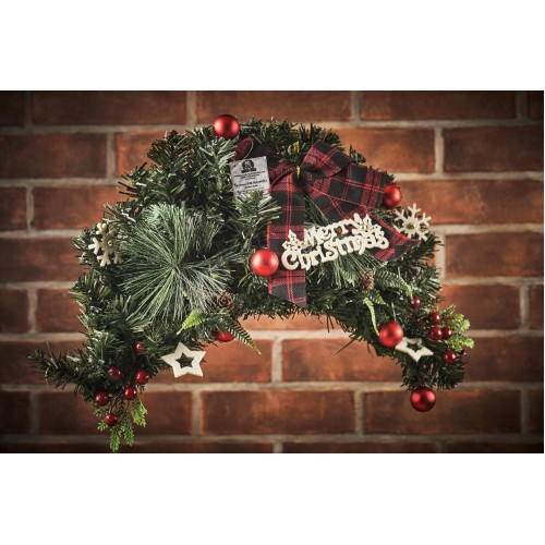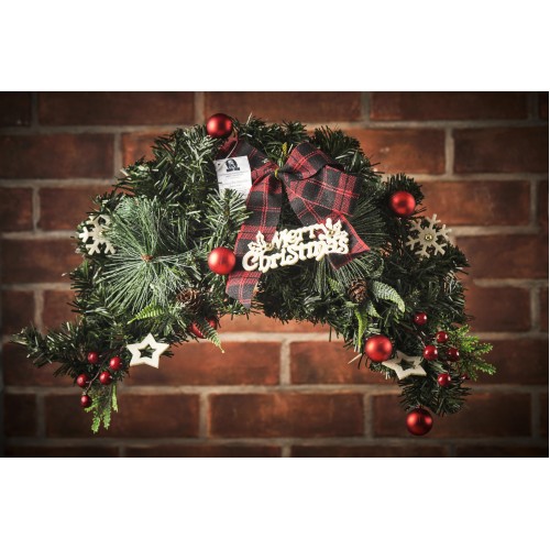 Гирлянда длинной 60 см, выполненная из пушистой ели, украшенная шишками, ягодами, бантом, надписью и украшениями, будет прекрасно смотреться на стене над часами или над дверью, станет прекрасным дополнением к другим рождественским украшением.