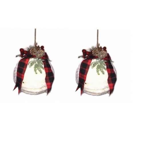 Комплект из двух шаров из белого меха с шишками и ягодами