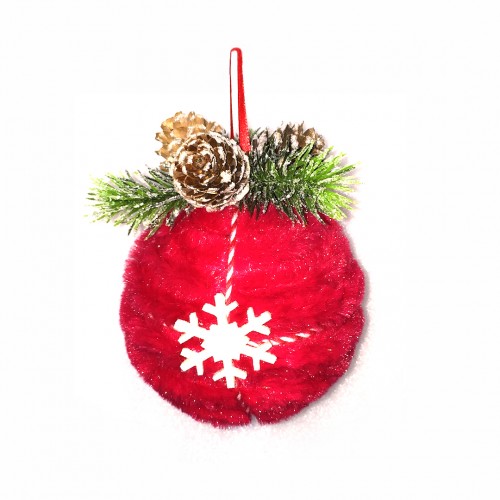 Комплект из двух шаров из красного меха с шишками и ягодами . Диаметр 12 см.