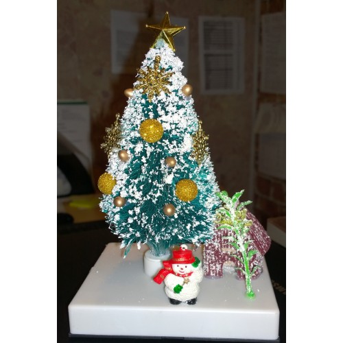 Елочка настольная зеленая, украшенная. С подсветкой (оптик). Высота: 21 см.